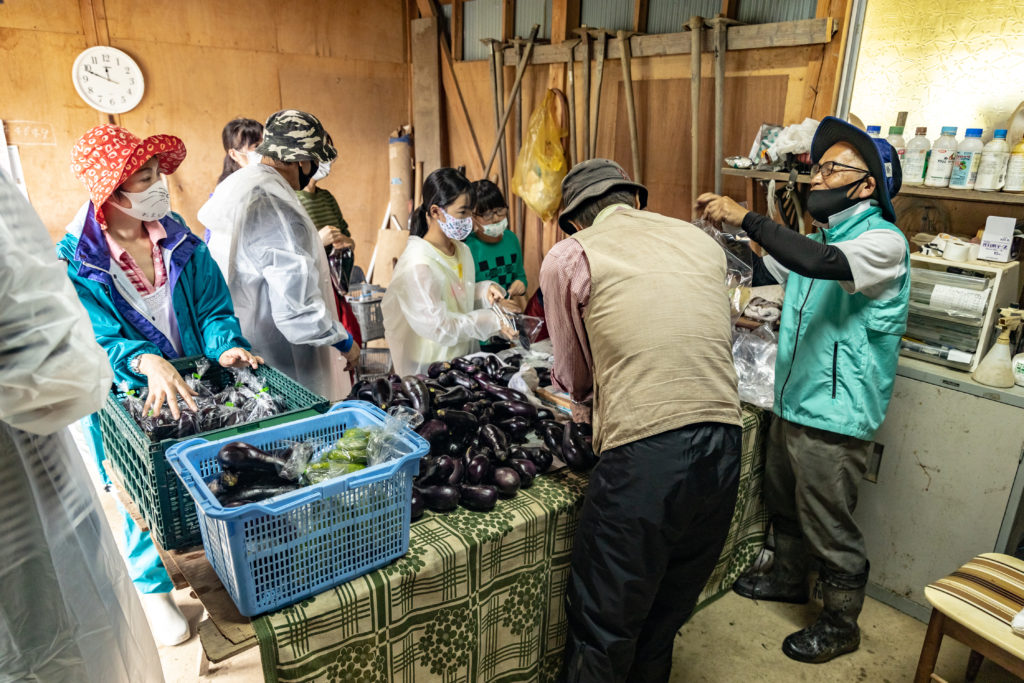 稲刈り体験となすびの収穫から出荷準備までを体験をしていただきました。