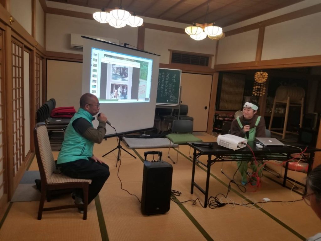 その後は、本日の参加者の皆さんから簡単な挨拶と感想を述べてもらいました。今回のはならあと宇陀松山のボランティアスタッフの方や喜楽座の岡田さん、池本先生も来られていました。