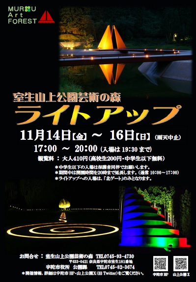 2025/11/14(金)~16(日)17:00-20:00【室生・室生山上公園芸術の森】室生山上公園芸術の森ライトアップ